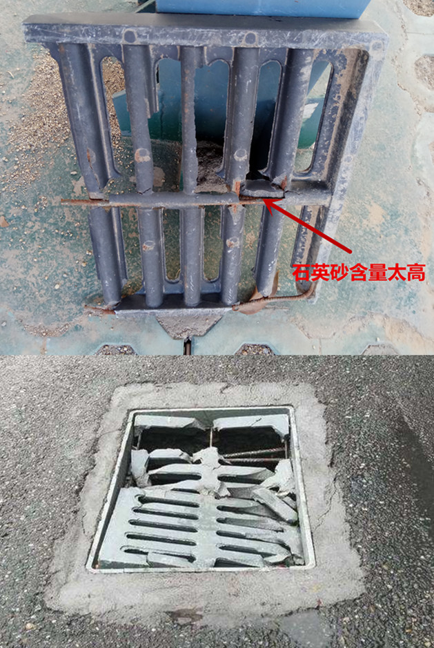 現(xiàn)階段溝蓋板的市場行情是什么樣呢?樹脂溝蓋板分為加砂溝蓋板和不加砂溝蓋板。市面上流通的大部分都是加砂的,加砂的溝蓋板只能走人,溝蓋板在生產(chǎn)過程中添加了石英砂就破壞了樹脂原有的韌性,很多廠家降低成本用低價來取悅客戶,在生產(chǎn)溝蓋板的時候降低樹脂的含量,添加大量的石英砂,結果就是溝蓋板的承載力也大打折扣,以價格低的優(yōu)勢迅速占領市場,導致路面上看到的溝蓋板大部分都是劣質(zhì)產(chǎn)品。(下圖所示)