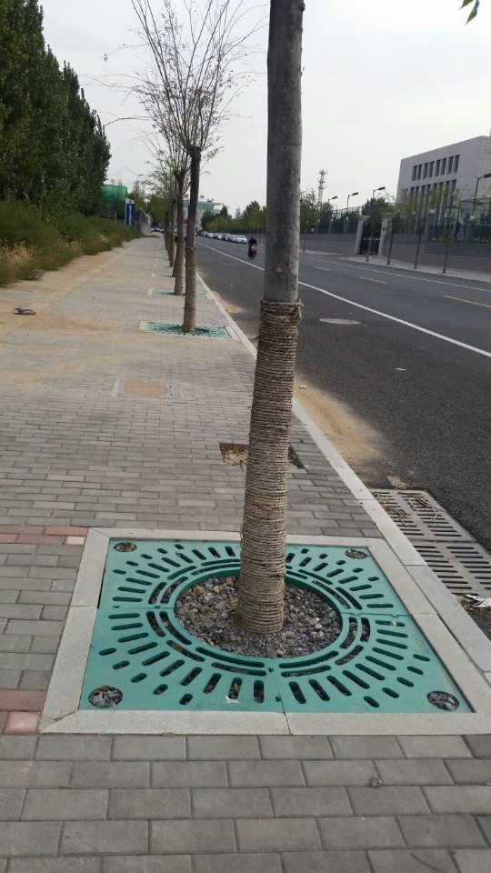 復合材料還有個顯著的特點:就是有自然防盜的作用。材質本身沒有二次利用價值,就大大的減少了護樹板被盜的現象。